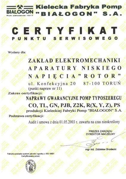 KFP Białogon S.A. Specjalizuje się w produkcji pomp wirowych poziomych i zatapialnych dla gospodarki wodno-ściekowej oraz dla przemysłu.